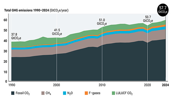 [4] United Nations Environment Programme (2025). Emissions Gap Report 2025: Off target – Continued collective inaction puts global temperature goal at risk [Olhoff, A., chief editor; Lamb, W.; Kuramochi, T.; Rogelj, J.; den Elzen, M.; Christensen, J.; Fransen, T.; Pathak, M.; Tong, D. (eds)]. Nairobi. https://doi.org/10.59117/20.500.11822/48854.